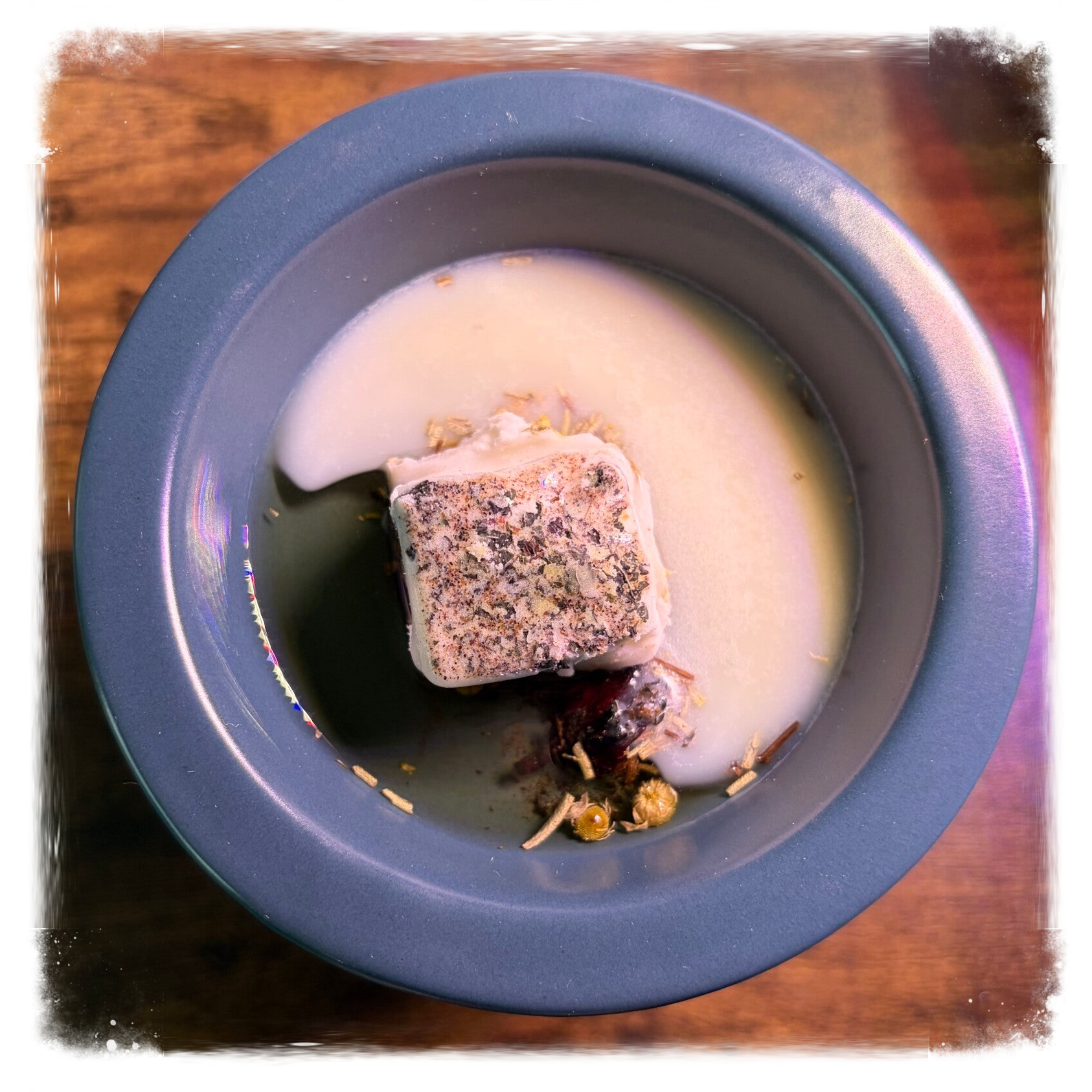 Infused with chamomile, rose petals, lavender, lemon balm, holy basil, and peppermint, each melt carries the soft vibration of renewal and tranquility.