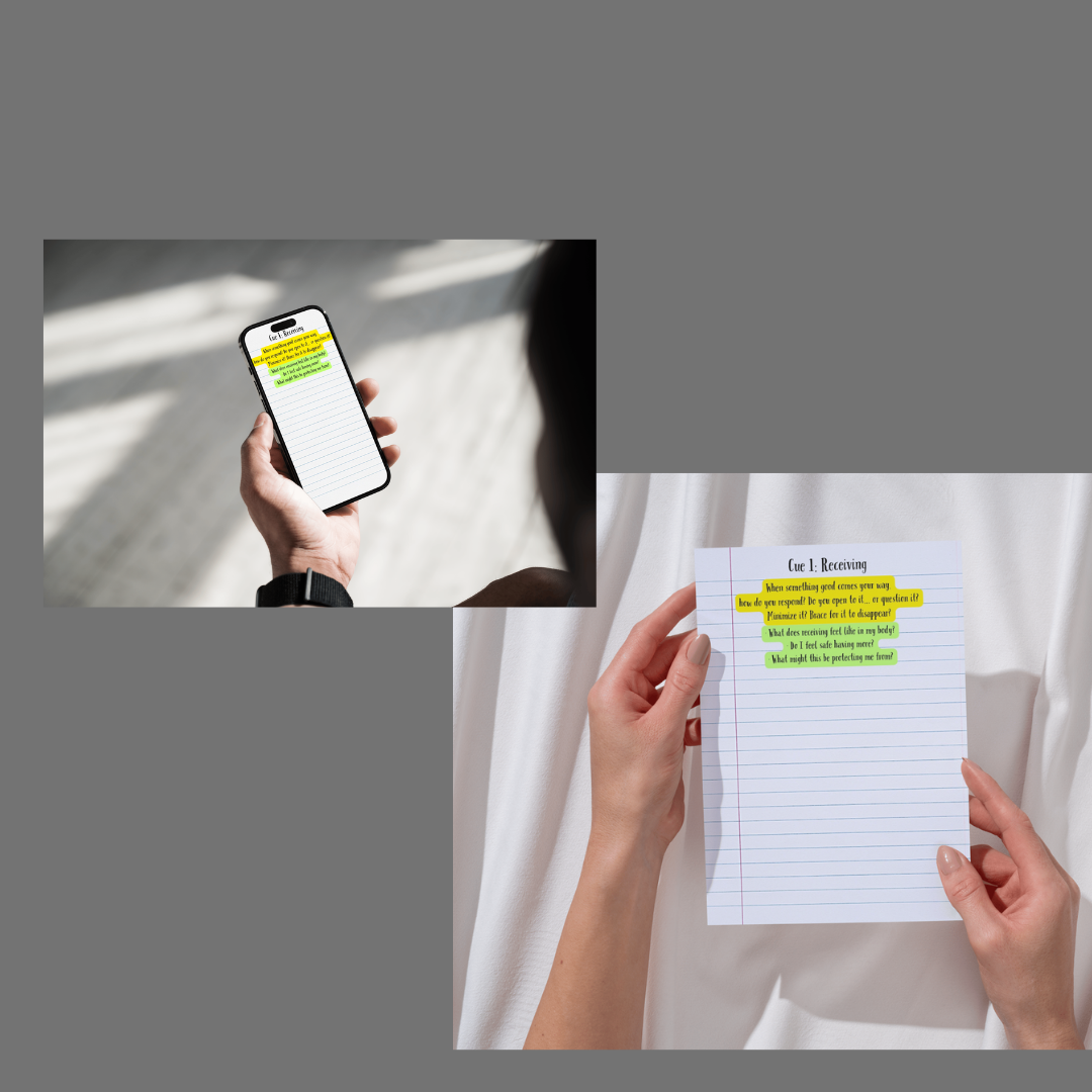 Each prompt is designed to bring attention to patterns around scarcity, worthiness, receiving, and control—helping you notice what may be influencing your internal signal.